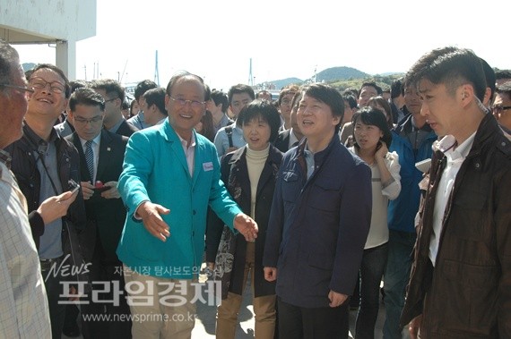 김충석 여수시장과 이야기하는 안철수