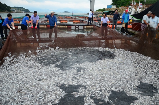 '적조경보' 전남서 줄돔 16만마리 폐사