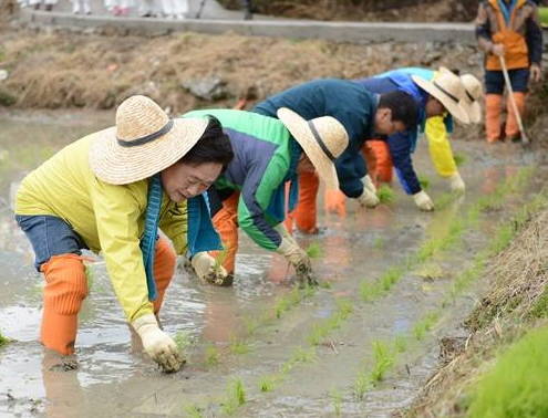 조충훈 시장 닦달에 시린물 발담근채 순천서 전국 첫 모내기