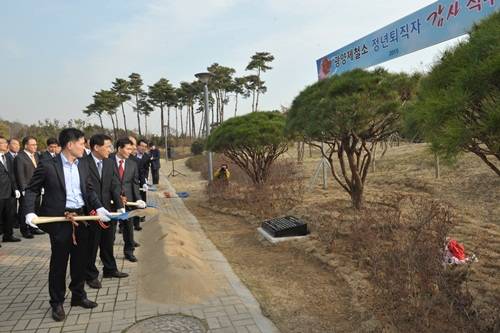 [포토]광양제철 퇴직자 40명 30년 정든직장에 기념식수