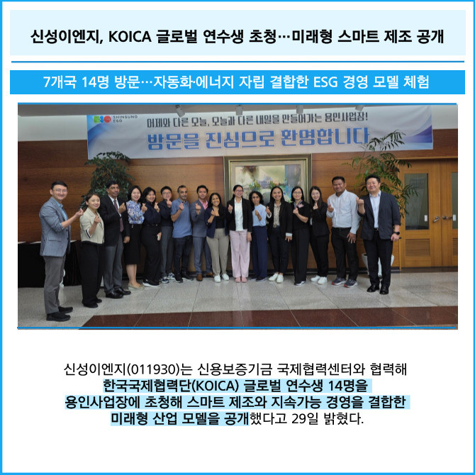 [카드] 신성이엔지, KOICA 글로벌 연수생 초청…미래형 스마트 제조 공개