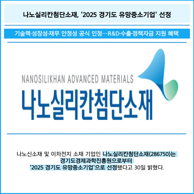 [카드] 나노실리칸첨단소재, '2025 경기도 유망중소기업' 선정