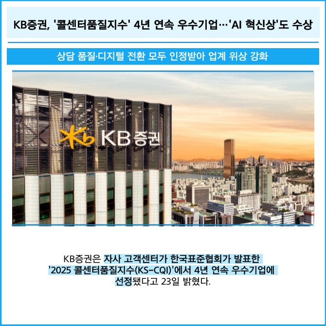 [카드] KB증권, '콜센터품질지수' 4년 연속 우수기업…'AI 혁신상'도 수상