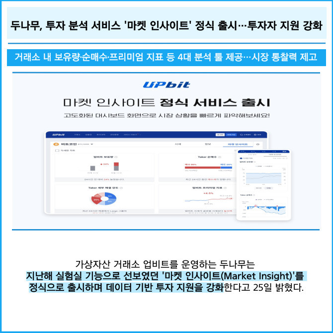 [카드] 업비트, 투자 분석 서비스 '마켓 인사이트' 정식 출시…투자자 지원 강화