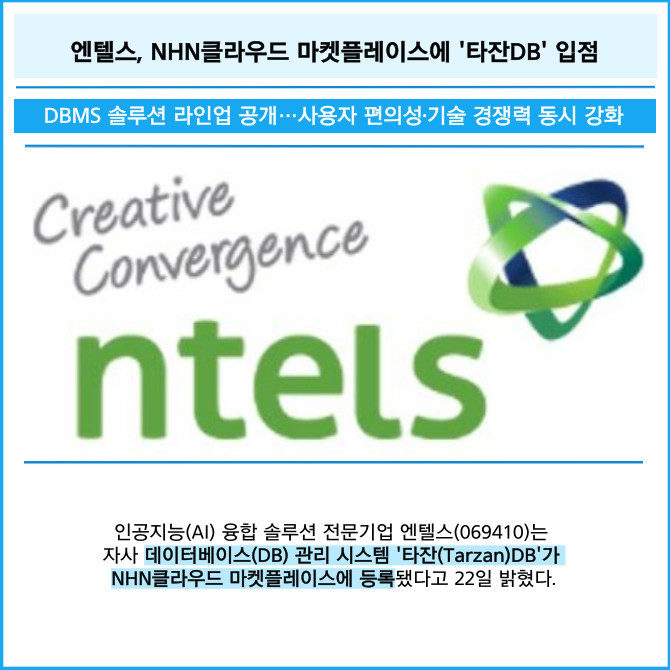 [카드] 엔텔스, NHN클라우드 마켓플레이스에 '타잔DB' 입점