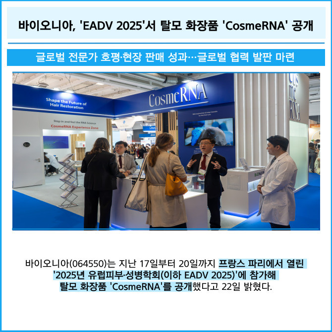 [카드] 바이오니아, 'EADV 2025'서 탈모 화장품 'CosmeRNA' 공개