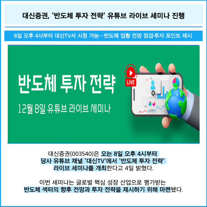 [카드] 대신증권, '반도체 투자 전략' 유튜브 라이브 세미나 진행