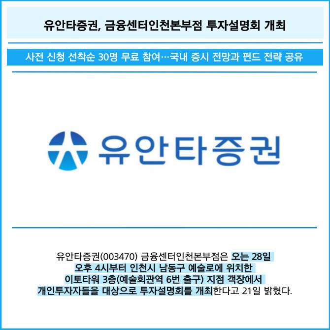 [카드] 유안타증권, 금융센터인천본부점 투자설명회 개최