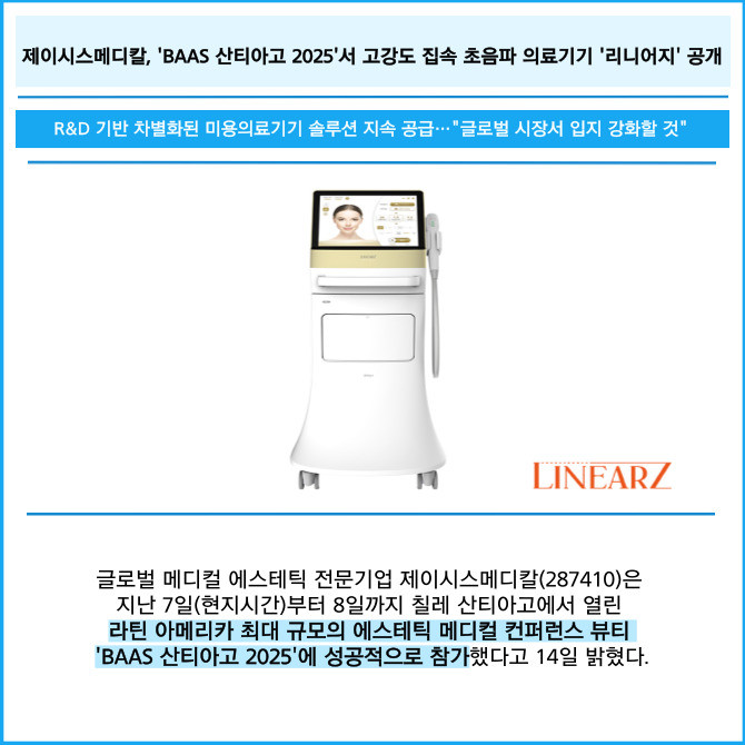 [카드] 제이시스메디칼, 'BAAS 산티아고 2025'서 고강도 집속 초음파 의료기기 '리니어지'…