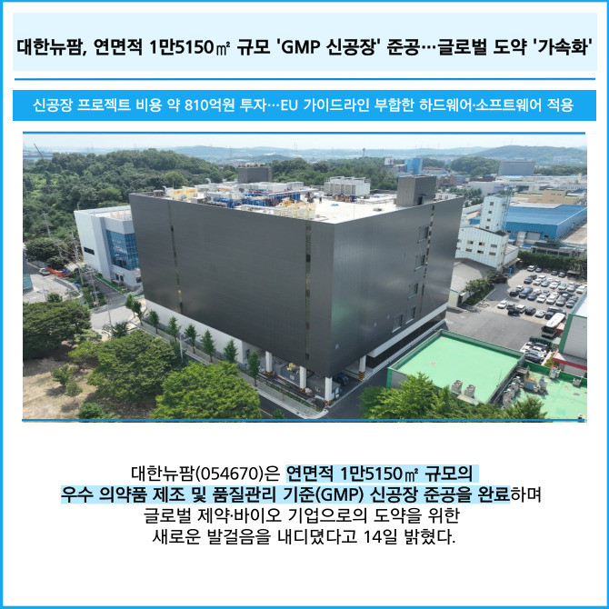 [카드] 대한뉴팜, 연면적 1만5000㎡ 규모 'GMP 신공장' 준공…글로벌 도약 '가속화'