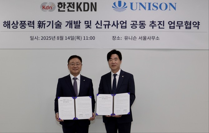 유니슨, 한전KDN과 '해상풍력 ICT 신사업·에너지 보안' 업무협약