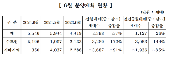 6월 아파트 5546가구 분양…지난해 동월比 26% ↑