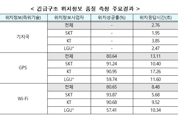 이통 3사 긴급구조 위치 성공률 'SKT>KT>LGU+순'