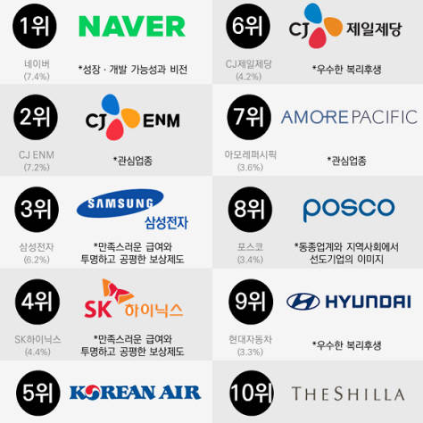 올해 대학생 일하고 싶은 기업 1위 '네이버'