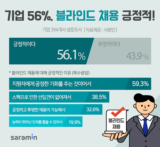 '직무적합성 중심' 기업 56% "블라인드 채용 긍정적"