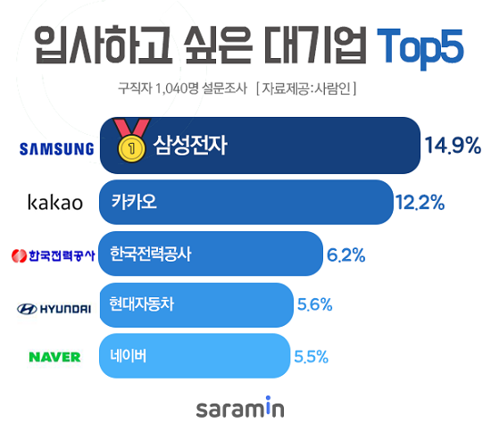 상반기 입사하고 싶은 대기업 1위 '삼성전자'