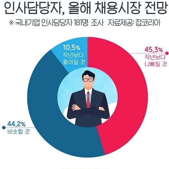 국내기업 인사담당자 45.3% "올해 채용경기 작년보다 나빠질 것"
