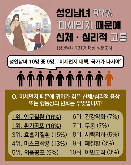 초미세먼지 기승, 성인남녀 97% "미세먼지로 고통 받아"