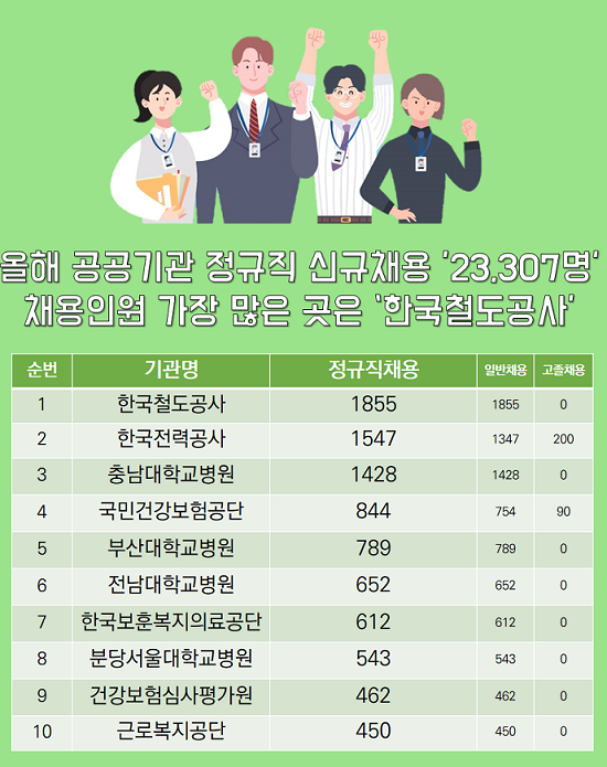 올해 정규직 신규채용 가장 많은 공공기관 '한국철도공사'
