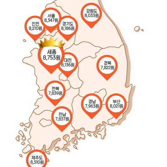 올해 전국 광역시도별 알바시급 1위 '세종시'