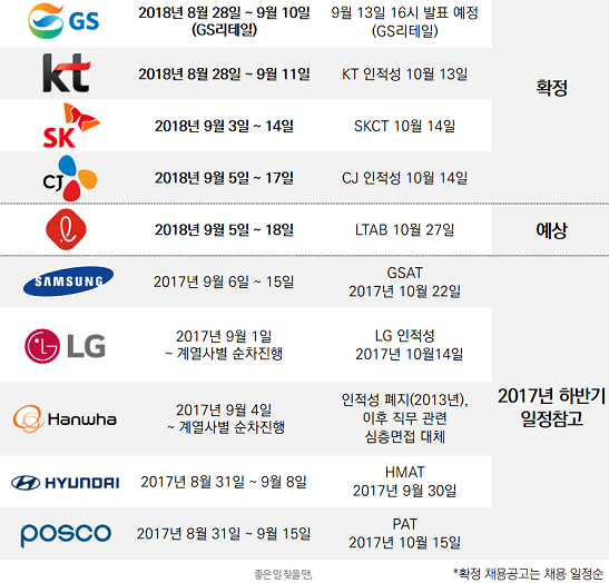 하반기 10대 그룹 공채 시작…9월 가장 몰려