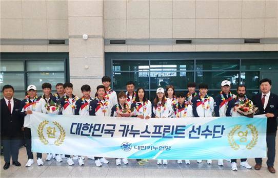 아시안게임 메달획득 카누대표팀 '금의환향'