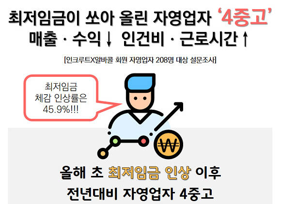 "최저임금 인상" 자영업자 '4중고'…인건비·근로시간↑매출·수익↓