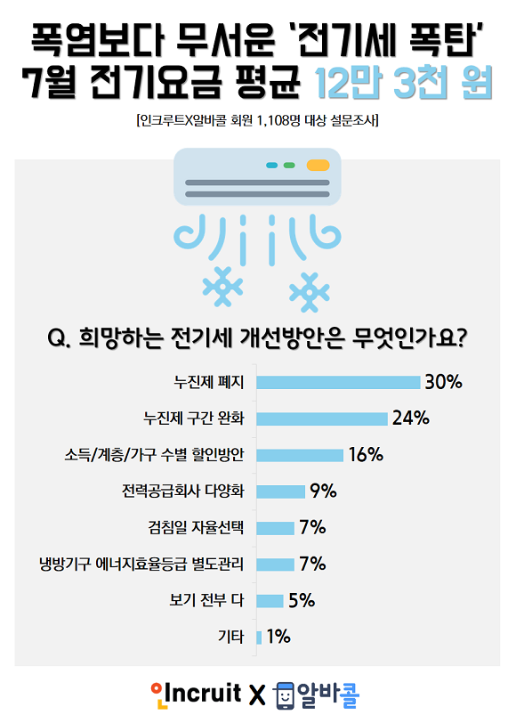 7월 전기요금 평균 12만3600원…'누진제 폐지' 희망 가장 많아