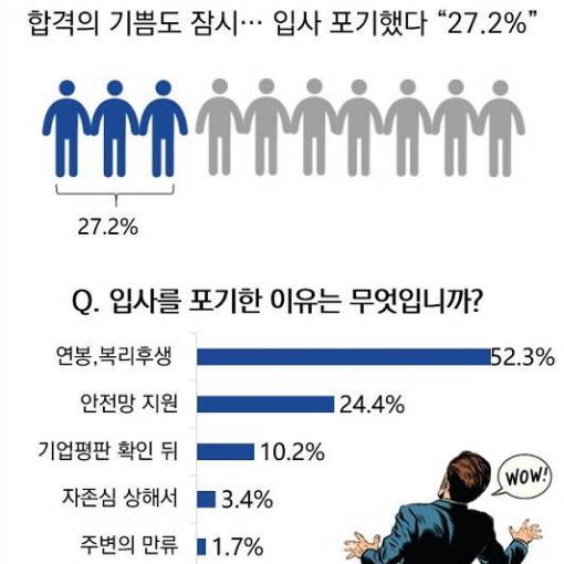 올해 구직자 열에 셋 "최종합격 후 입사포기"