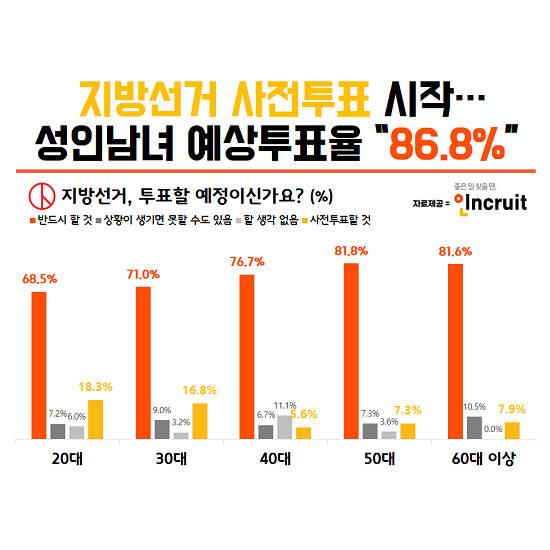 직장인 35.8% "지방선거일에 출근"…중견기업 비율 최고