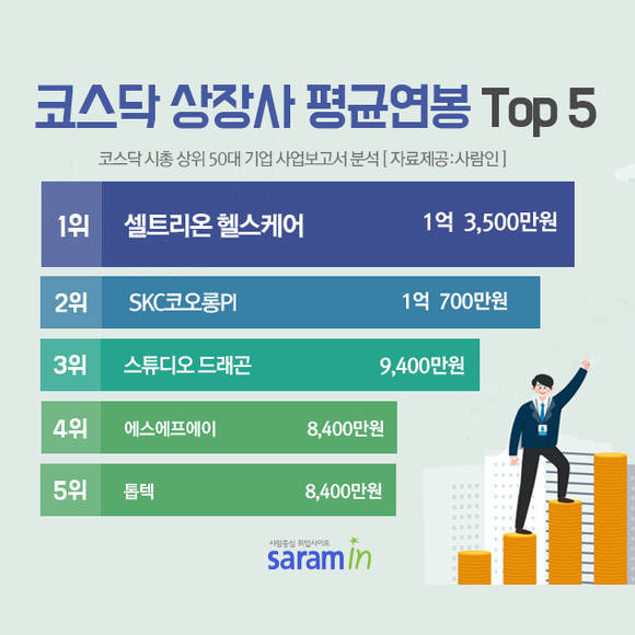 코스닥 시총 50대 기업, 직원 평균 연봉 5500만원