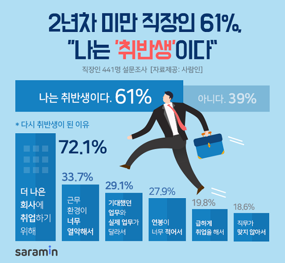 2년차 미만 직장인 61% "다시 취업 준비중"