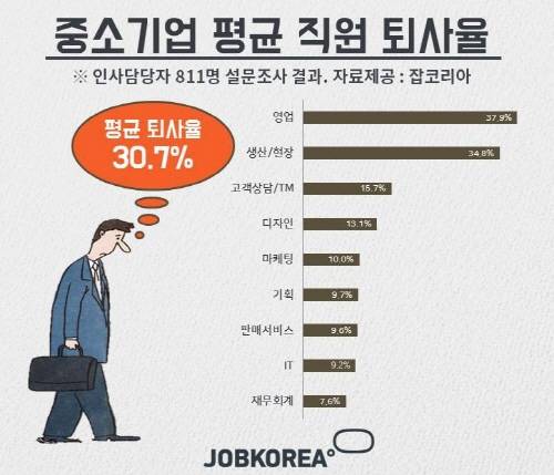 올해 국내 중소기업 직원 평균 열에 셋 "퇴사"