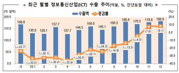 지난달 ICT 수출 182억6000만달러…8.1% 증가