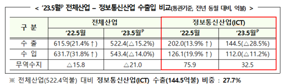 지난달 ICT 수출 144억5000만달러…28.5% 감소