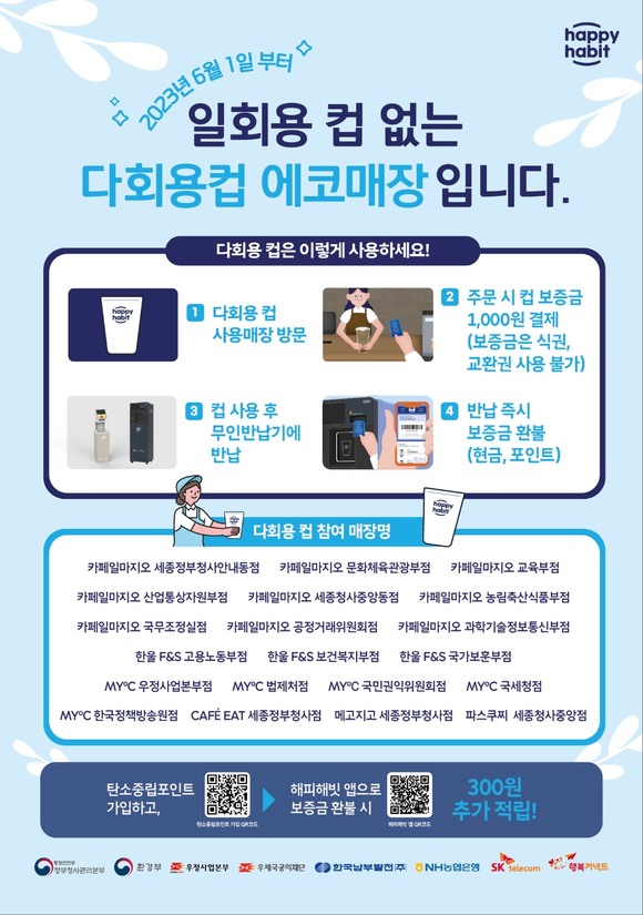 우본, 정부세종청사 입점 카페 일회용 컵 제로화 추진
