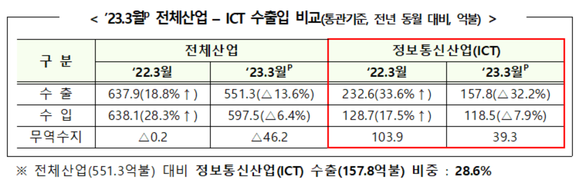 지난달 ICT 수출 157억8000만달러…32.2% 급감