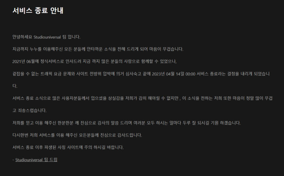 '불법 스트리밍' 누누티비, 자진 서비스 종료