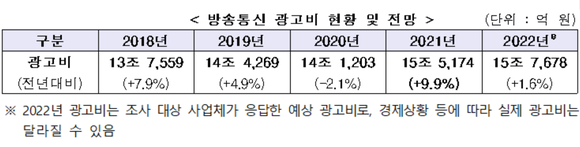 2021년 국내 방송통신 광고비 15조5174억원