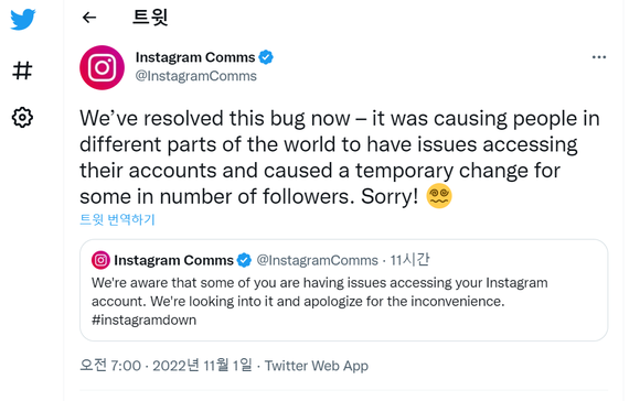 인스타그램, 8시간 넘게 서비스 장애…오전 7시 복구