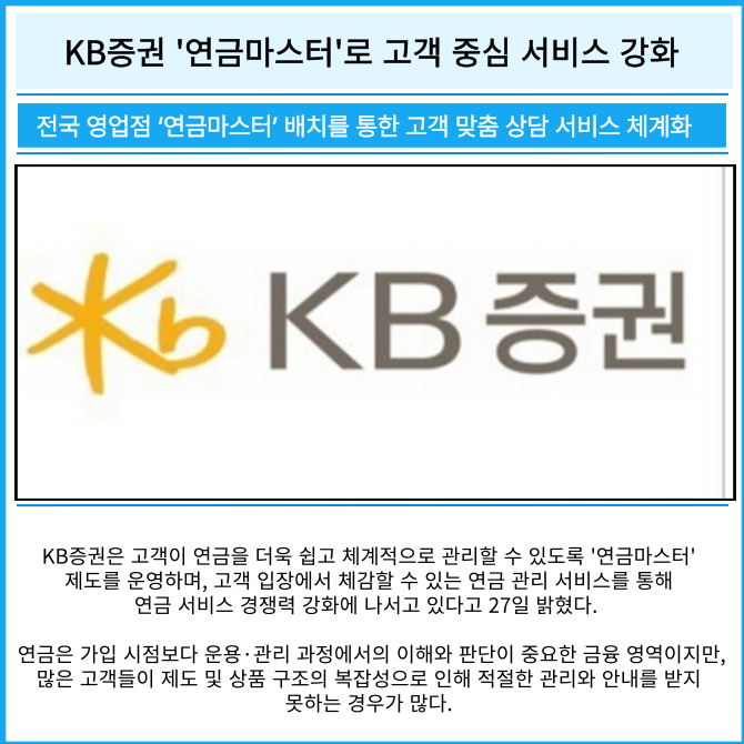 [카드] KB증권 '연금마스터'로 고객 중심 서비스 강화