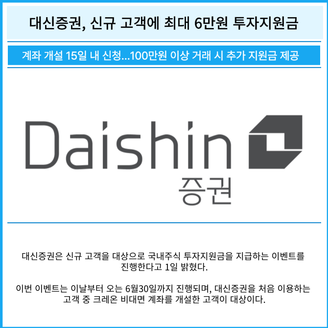 [카드] 대신증권, 신규 고객에 최대 6만원 투자지원금