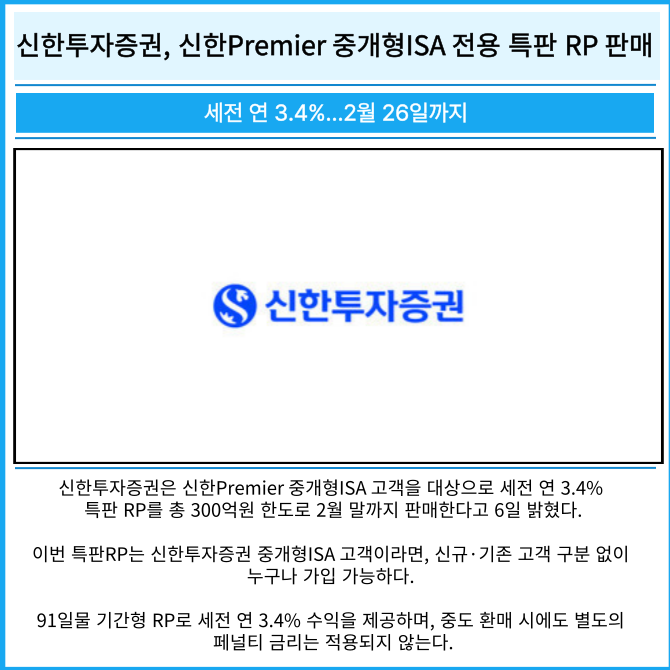 [카드] 신한투자증권, 신한Premier 중개형ISA 전용 특판 RP 판매