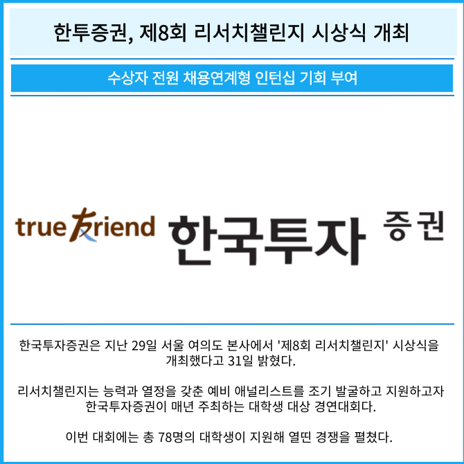 [카드] 한투증권, 제8회 리서치챌린지 시상식 개최