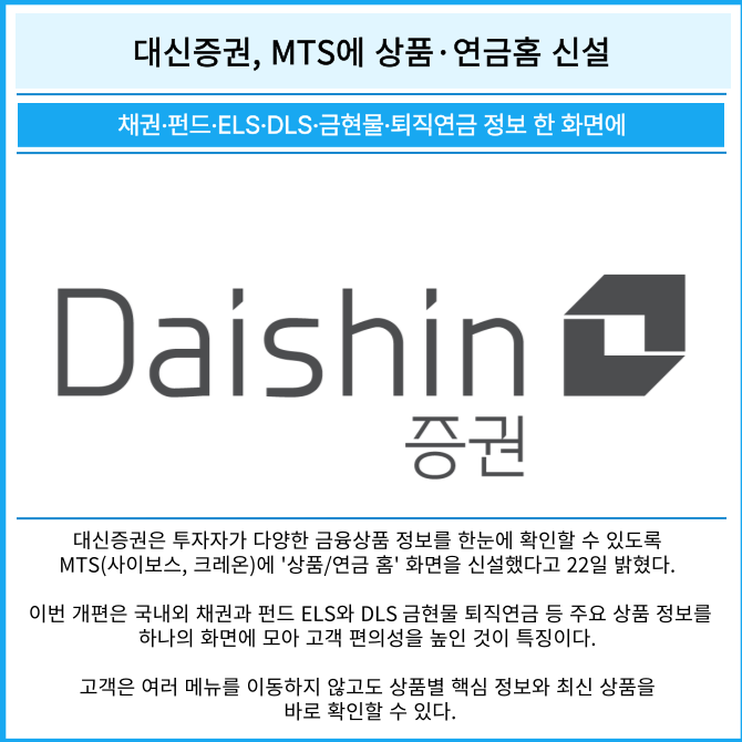 [카드] 대신증권, MTS에 상품·연금 홈 신설