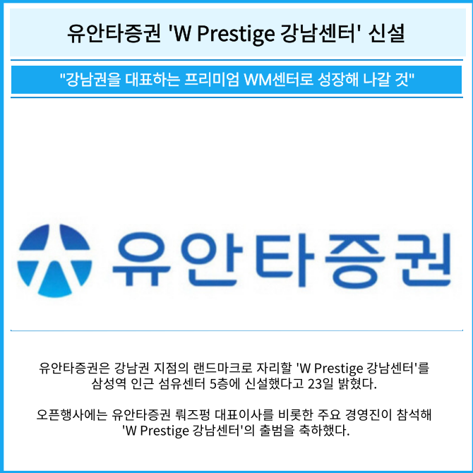 [카드] 유안타증권 'W Prestige 강남센터' 신설