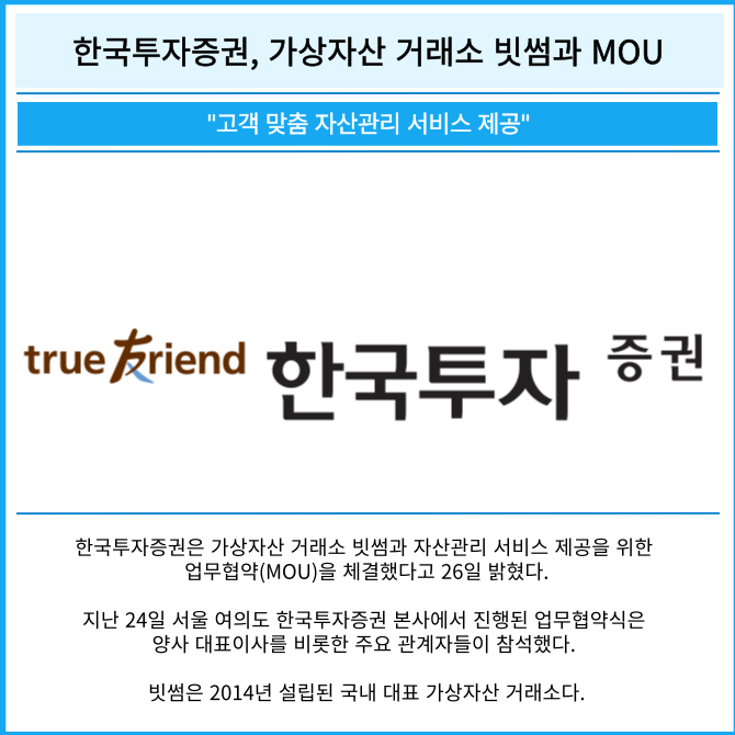 [카드] 한국투자증권, 가상자산 거래소 빗썸과 MOU