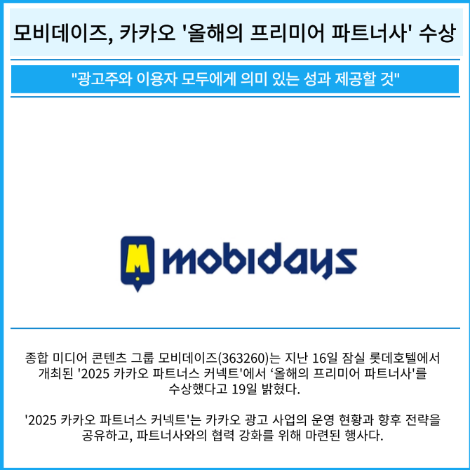 [카드] 모비데이즈, 카카오 '올해의 프리미어 파트너사' 수상