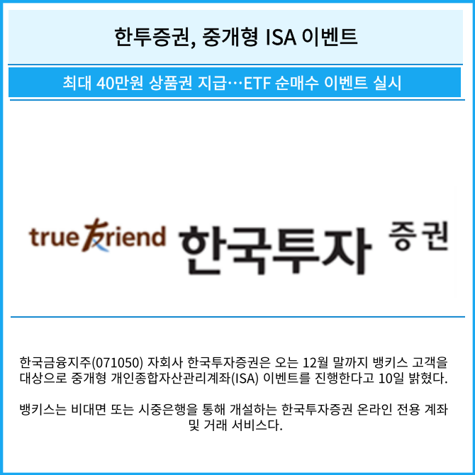 [카드] 한투증권, 중개형 ISA 이벤트