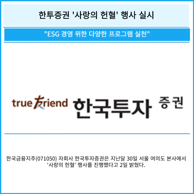 [카드] 한투증권 '사랑의 헌혈' 행사 실시